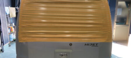 ダイハツ ハイゼットS321V リアガラス交換 埼玉県よりご来店くださいました。 輸入リアガラスに交