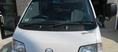 マツダ ボンゴSLP2V フロントガラス交換 東京都よりご来店くださいました。 車検が近く料金を抑え