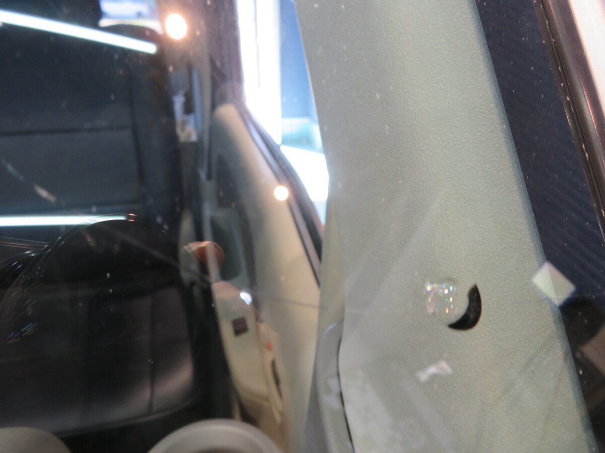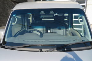 輸入の衝突防止機能付フロントガラスに交換です。ガラス上部にブルーのぼかしが入るタイプをお選びました。