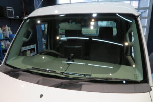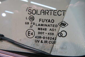 社用車のフロントガラス交換で、輸入UVカットガラスになります。