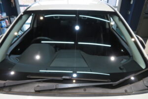 純正ガラスはアイサイト/デアイサー(熱線)/レインセンサー/IR(断熱)/遮音とたくさん付いた仕様です。