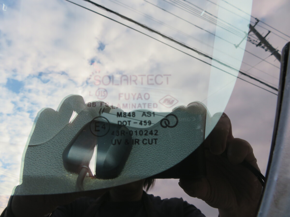お客様より交換歴があり現車にはFUYAOのガラスが付いているということで、FUYAOの輸入UVカットガラスに交換です。