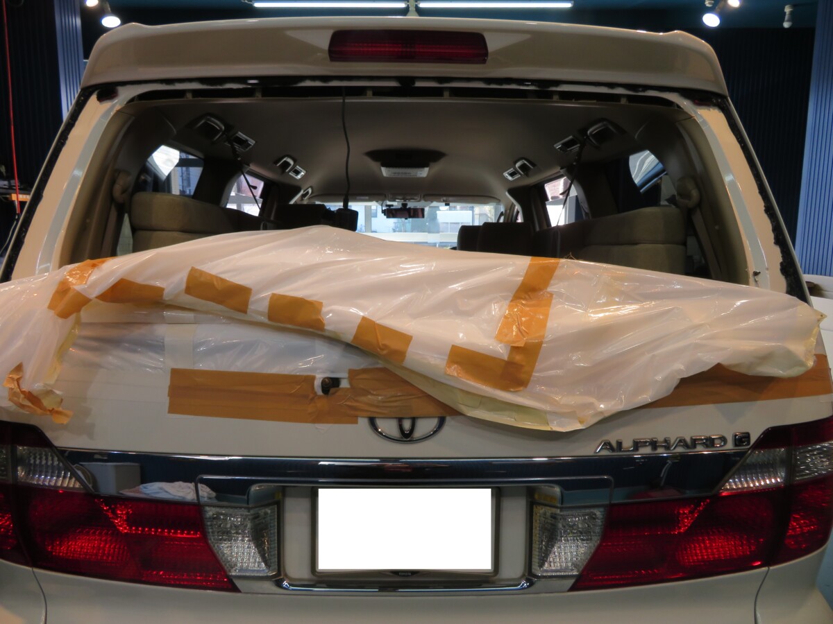 トヨタ アルファードANH10 リアガラス交換