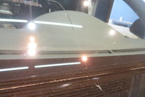 純正ガラスはデアイサー(熱線)付きの仕様。輸入ガラスはデアイサー付きの設定がないため本来であれば純正ガラスですが、お客様と相談の上デアイサー外しの輸入ガラスで交換となりました。