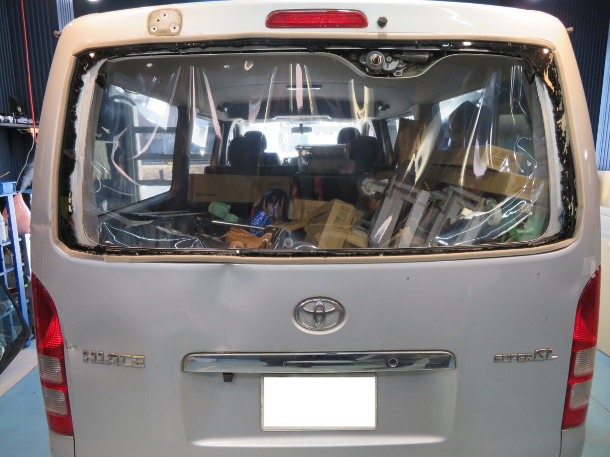 トヨタ ハイエース標準 リアガラス交換 2026/01/23 トヨタ ハイエース標準 リアガラス交換 東京都よりご来店くださいました。 輸入のリアガラスに交換です。 車体側に少し凹みがありましたが問題なく取り付けることができました。 リアガラス交換前 リアガラス交換後 本日はご来店ありがとうございました