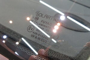 IR(断熱)と遮音無しの輸入UVカットガラスに交換です。ガラス上部にブルーぼかしが入るタイプをお選びました。