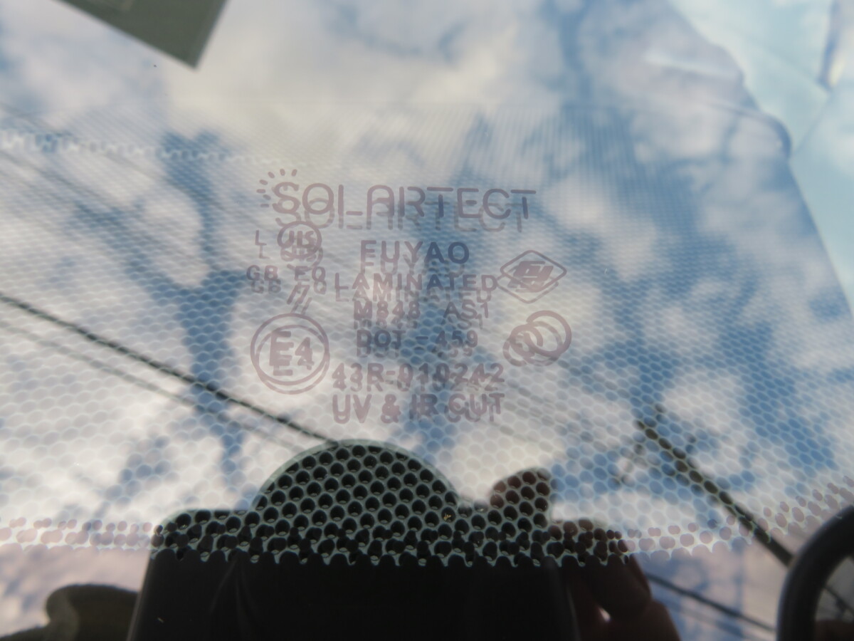 輸入のレインセンサー付フロントガラスに交換です。サイドモールは再利用となりました。