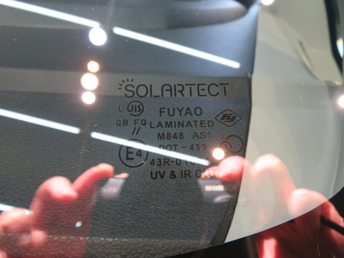 フィットのフロントガラス交換で、純正ガラスはデアイサー(熱線)付きの寒冷地仕様でしたがお客様よりデアイサーは必要ないので外してくださいとのことでした。