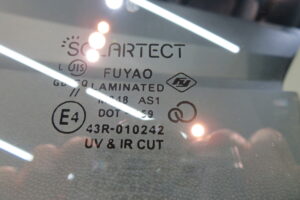 デアイサー(熱線)と遮音が入った純正ガラスですが、全て外してノーマルの輸入UVカットガラスに交換です。