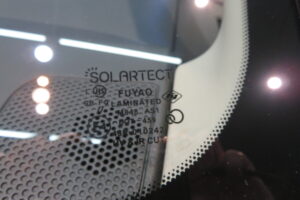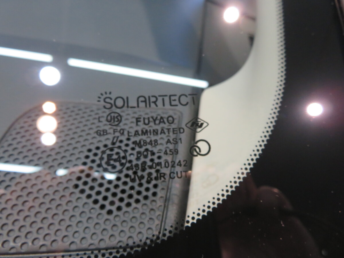輸入の衝突防止機能付フロントガラスのブルーぼかし付きに交換です。