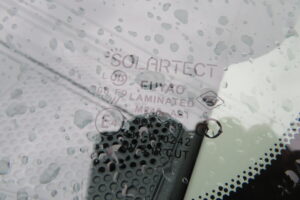 輸入の衝突防止機能付フロントガラスに交換です。